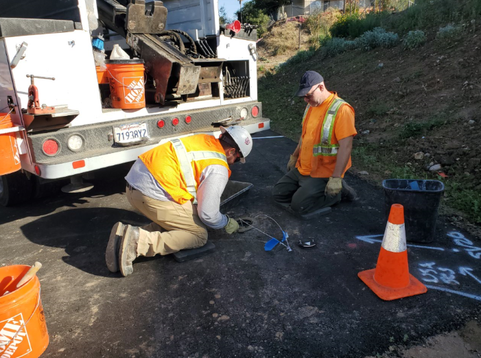 Workers collecting soil vapor samples for analysis.